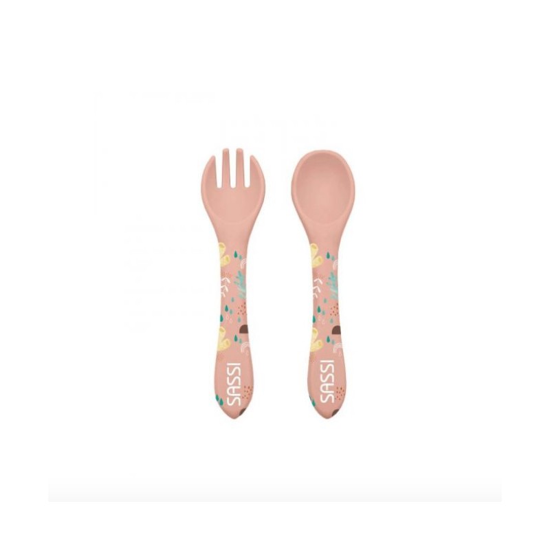 Découvrez ce kit avec fourchette et cuillère en silicone, spécialement conçu pour accompagner les repas des tout-petits