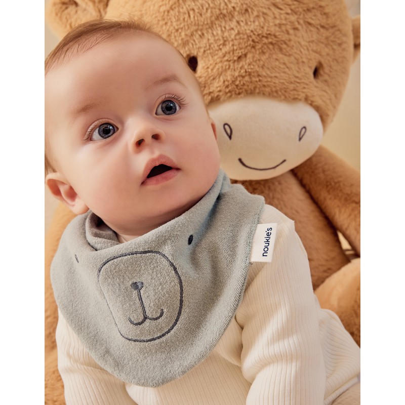 Ce lot de 2 bavoirs bandana est idéal pour les tout-petits dès la naissance jusqu’à 3 mois. Conçus pour s’adapter parfaitement à la morphologie de bébé, dans une teinte red, ils se ferment grâce à un scratch ultra doux, sans danger pour la peau. L’un est en éponge brodée du personnage Orso, l’autre présente une broderie élégante du logo Noukie’s.