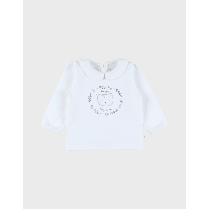 Confectionné avec soin en jersey de coton, ce t-shirt blanc assure un confort optimal tout au long de la journée. Orné d’un imprimé ourson plein de tendresse, il ajoute une note ludique à son look. Les fronces sur les épaules apportent une touche délicate et originale.