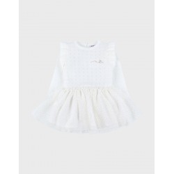 Craquez pour cette adorable robe bi-matière, un véritable coup de cœur pour les petites princesses ! Avec son dessus en jersey tricot et son tulle en plumeti rehaussé de lurex, cette robe apporte une touche de féérie à chaque occasion.