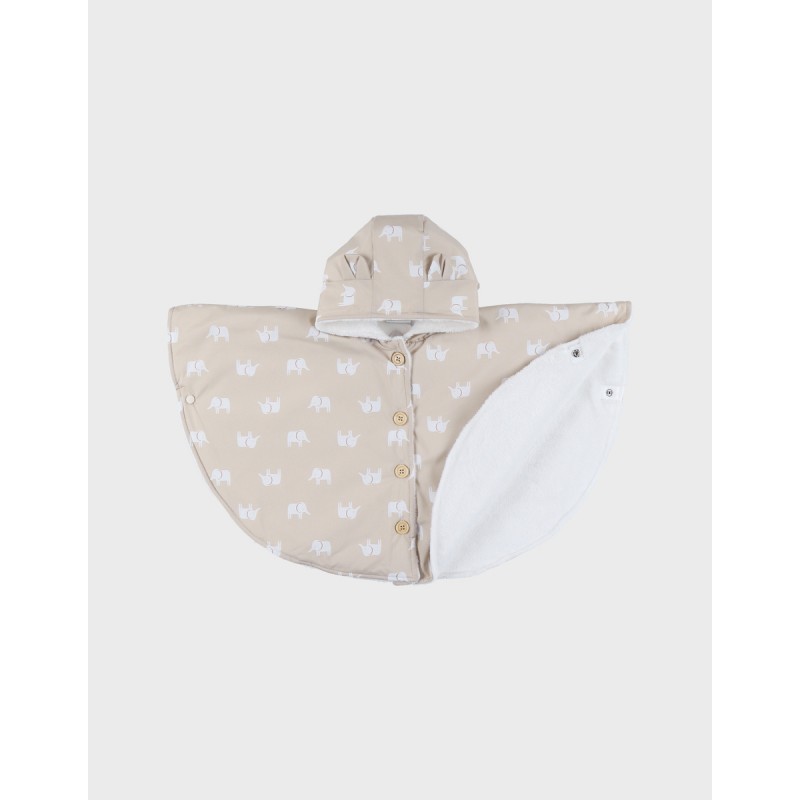 L' extérieur déperlant de ce poncho pratique et élégant protège efficacement des petites averses, tandis que son intérieur en sherpa ultra-doux enveloppe bébé d’une chaleur réconfortante.