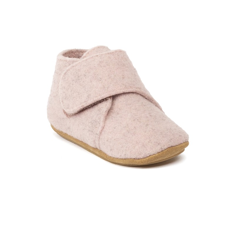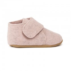 Chaussons souples premiers pas en feutrine de laine munis d’une large bande auto agrippante Bellamy Love Feutre Rose.