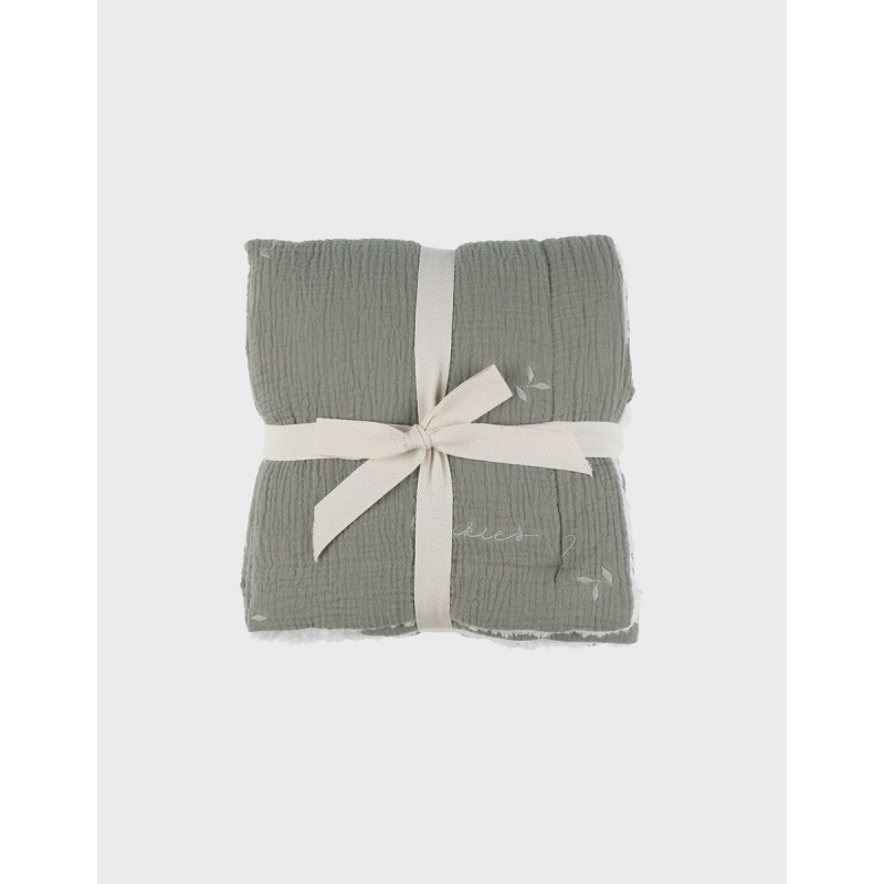 Offrez à bébé un cocon de douceur avec cette couverture double face aussi jolie que pratique : une gaze de coton BIO verte légère d’un côté, une sherpa blanche toute moelleuse de l’autre. Ornée de délicates broderies végétales et du logo Noukie’s en écru, elle allie confort, tendresse et raffinement dès les premiers jours.