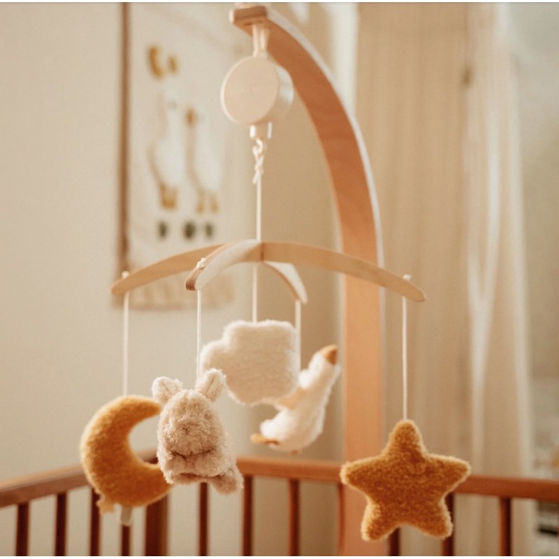 Un spectacle apaisant pour les petits rêveurs. Le Mobile Musical en Bois Newborn Naturals tourne doucement et joue une mélodie apaisante qui aide à s'endormir. Les couleurs subtiles et les adorables figurines attirent l'attention et stimulent les sens. Fabriqué en bois de haute qualité et parfait pour au-dessus du berceau ou du parc. Un moment enchanteur de calme et d'émerveillement, chaque jour à nouveau.
