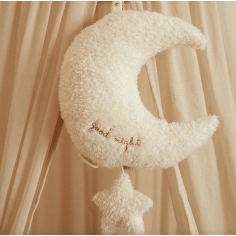 Laissez votre petit rêver sous la lune. Tirez sur la cordelette et la boîte à musique Newborn Naturals joue une douce mélodie, parfaite pour un coucher apaisant. Le design douillet, les matériaux doux et le système de suspension pratique en font un ajout charmant à la chambre d'enfant. Une douce lune veille sur votre petit et procure un sentiment de sécurité. Faites de beaux rêves, petit ! Attention : ceci est un article décoratif. Gardez hors de portée des enfants.
