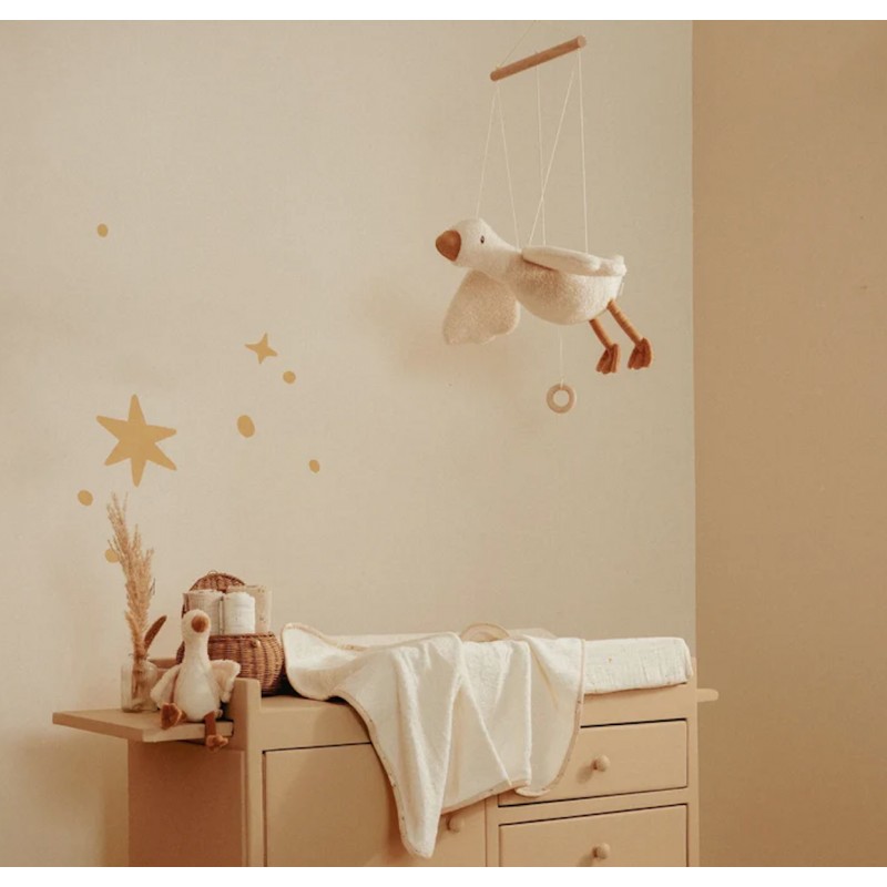Laissez Little Goose flotter gracieusement dans la pièce et apportez une touche de calme et de merveille dans la chambre d'enfant. Avec sa forme élégante et son apparence douce, il semble voler dans les airs, parfait pour une ambiance rêveuse. Le design léger et aéré crée une apparence ludique et sereine et s'intègre facilement dans n'importe quelle chambre d'enfant. Facile à suspendre, il stimule l'imagination et apporte une ambiance chaleureuse et calme. Laissez votre petit rêver sous les ailes de Little Goose. Attention : ceci est un objet décoratif. Garder hors de portée des enfants.