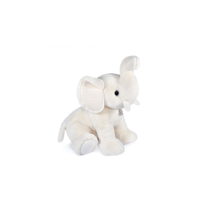 Un bel éléphant blanc, sobre et très chic avec ses oreilles en joli jersey en rayures relief. Un joli pantin moelleux, souple et très doux, que chacun appréciera pour jouer, cajoler ou décorer la chambre. Un cadeau idéal dès la naissance.