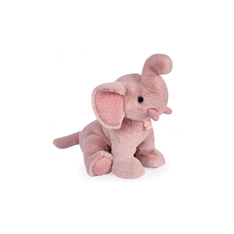 Un bel éléphant rose poudré, sobre et très chic avec ses oreilles en joli jersey en rayures relief. Un joli pantin moelleux, souple et très doux, que chacun appréciera pour jouer, cajoler ou décorer la chambre. Un cadeau idéal dès la naissance.