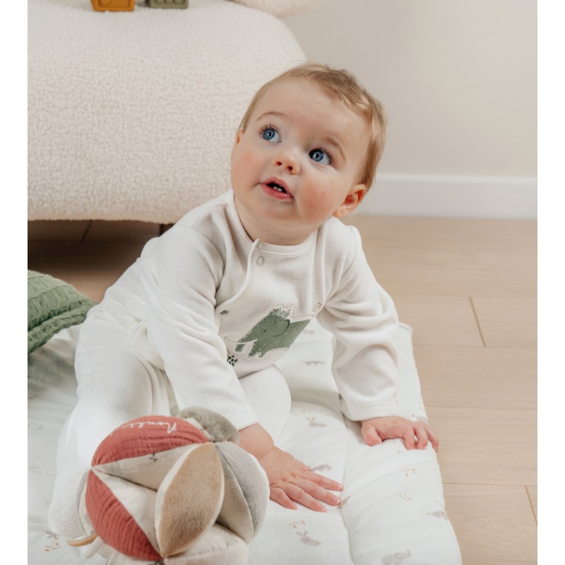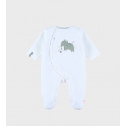 Ce pyjama dors-bien en velours blanc est soigneusement confectionné avec une jolie broderie éléphant sur la poitrine. Parfait pour les nuits fraîches, il allie confort, douceur et praticité pour le quotidien de bébé.