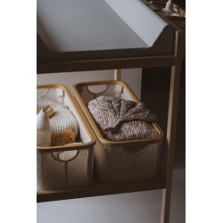 Ce panier de rangement, spécialement conçu pour nos tables à langer, allie élégance et fonctionnalité. Fabriqué en bambou et coton de haute qualité, ce panier offre une manière naturelle et durable de garder tous les essentiels de bébé bien organisés. Avec des dimensions de 24x60x18 cm, il s'intègre parfaitement avec nos tables à langer, maintenant toutes les nécessités à portée de main. Gardez la chambre de bébé bien organisée et ajoutez une touche de style avec ce panier de rangement pratique.